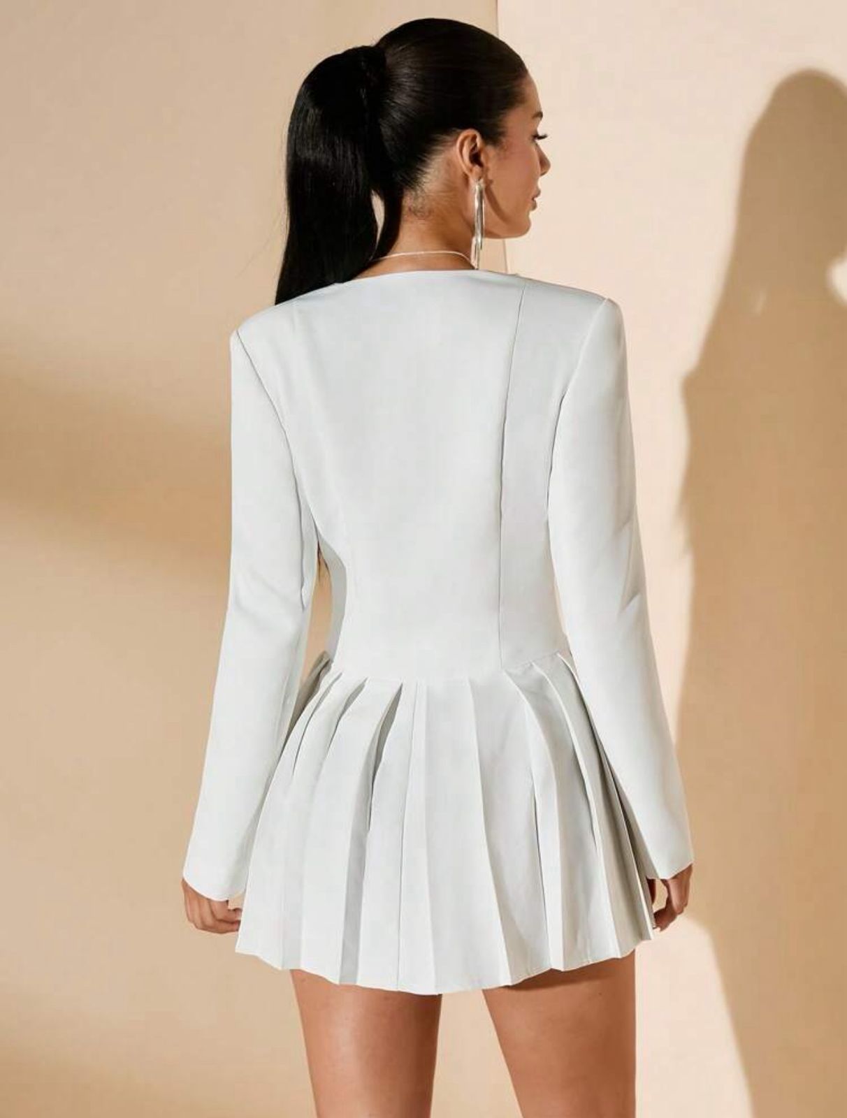 Vestido elegante de manga larga con cuello V y botones frontales